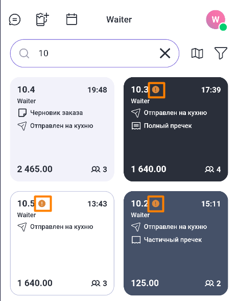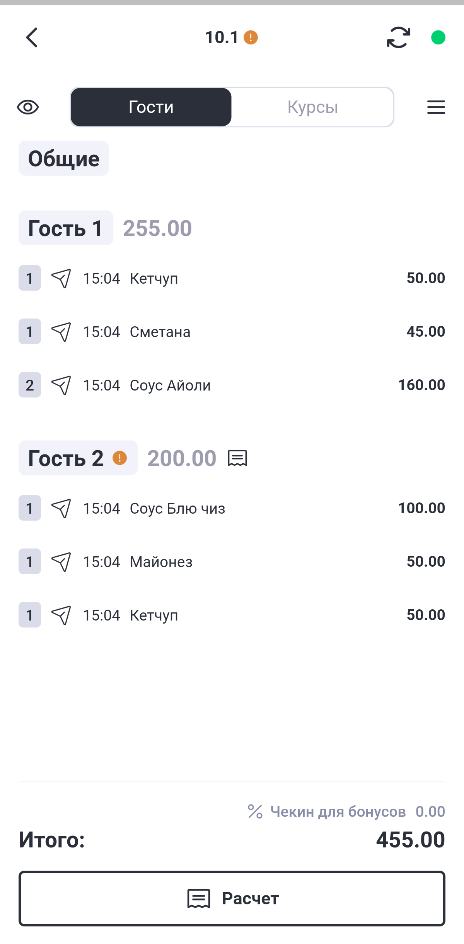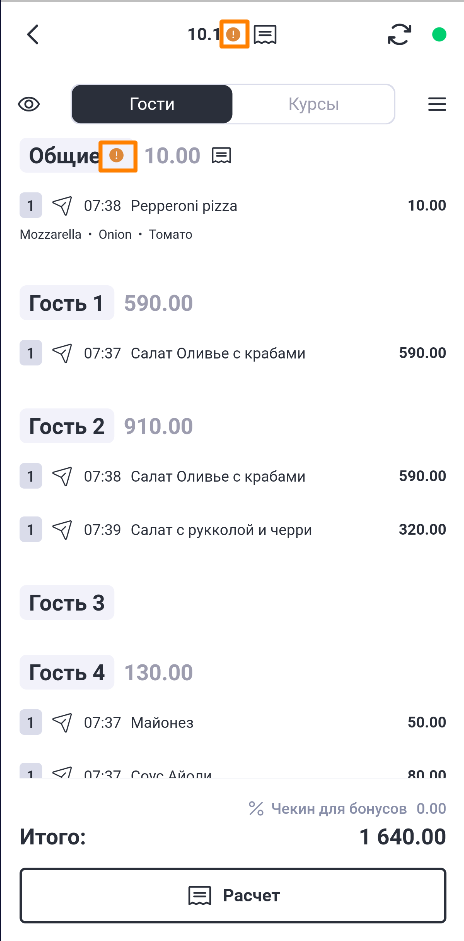 4. После распечатки чека намерения заказ/гость помечается иконкой
