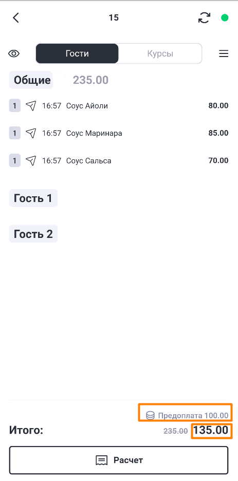 - Решена проблема присвоения статуса "Чек намерения" заказу с предоплатой. Теперь после добавления предоплаты в заказ на кассе, статус заказа на Waiter не меняется.