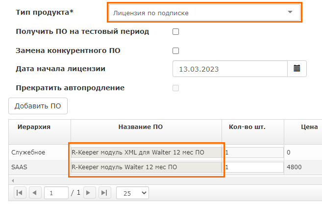 Чтобы сгенерировать активную лицензию, например, для R-Keeper модуль XML для Waiter 12 мес ПО: