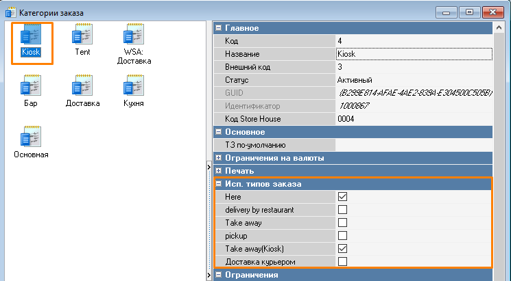 1. В менеджерской r_keeper в меню Заказ > Категории заказа выберите (заведите новую) категорию заказа и назначьте ей типы заказа, с которыми работает киоск.
