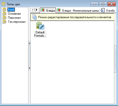 3. В разделе Меню > Меню для всех блюд, продаваемых на киоске, назначить цены для соответствующего типа цен.