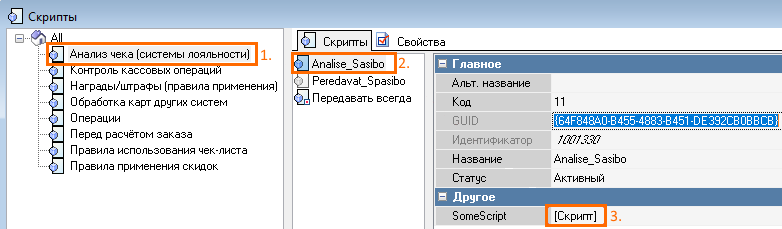 В группу Анализ чека (системы лояльности) добавьте скрипт: