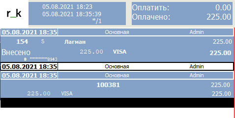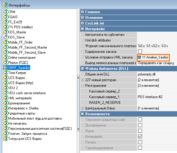 procedureReceiptXMLAnalysis1001330(AXMLReceiptParameters: TXMLReceiptParameters);varp:integer;xml, PaymentTag, ExtInfo, CardInfo:string;beginxml := AXMLReceiptParameters.ReceiptXML;whilexml <>''dobeginp := pos('<PAYMENT ', xml);ifp =0thenexit;xml := copy(xml, p, length(xml));p := pos('/>', xml);PaymentTag := copy(xml,1, p +1);xml := copy(xml, p +2, length(xml));p := pos('exttransactioninfo="BANK:SBRF', PaymentTag);ifp >0thenbeginExtInfo := copy(PaymentTag, p + length('exttransactioninfo="'),length(PaymentTag));p := pos('"', ExtInfo);ExtInfo := copy(ExtInfo,1, p -1);p := pos('/PdsCard=', ExtInfo);ifp =0thenbeginp := pos('PdsCard=', ExtInfo);ifp =1thenCardInfo := copy(ExtInfo,1+ length('PdsCard='), length(ExtInfo))elseCardInfo :='';endelseCardInfo := copy(ExtInfo, p + length('/PdsCard='), length(ExtInfo));ifCardInfo <>''thenbeginp := pos(CardInfo,'/');ifp >0thenCardInfo := copy(CardInfo,1, p -1);AXMLReceiptParameters.CardCode := CardInfo;AXMLReceiptParameters.DoTransfer :=true;AXMLReceiptParameters.SilentMode :=true;end;end;end;end;- Назначьте скрипт интерфейсу SBRF_Spasibo созданному ранее