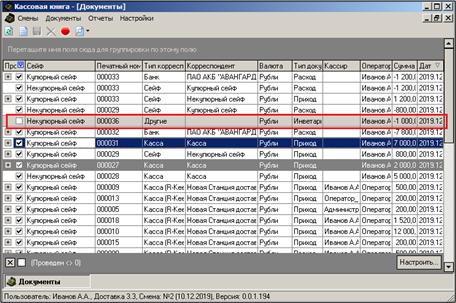 Закладка «Наличные» доступна для редактирования в том случае, если в свойствах сейфа стоит флаг Купюрный сейф.