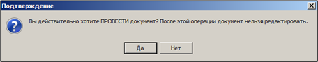 на панели инструментов. После подтверждения сообщения документ будет проведен и его нельзя будет отменить.