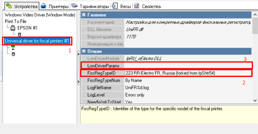 Настройка фискальных регистраторов с помощью универсального драйвера