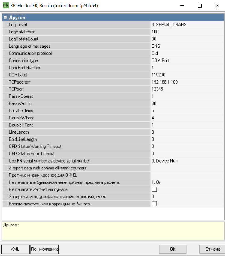 Если параметр равен нулю, то драйвер пытается прочитать значение ширины печати из регистра 18h ФР. И если в регистре будет ноль, то ФР ищет ширину печати по известному индексу модели. - Comma separated list of disabled TLV Tags — по умолчанию пустой. Список номеров тегов, которые драйвер не будет пытаться передавать в ФР
