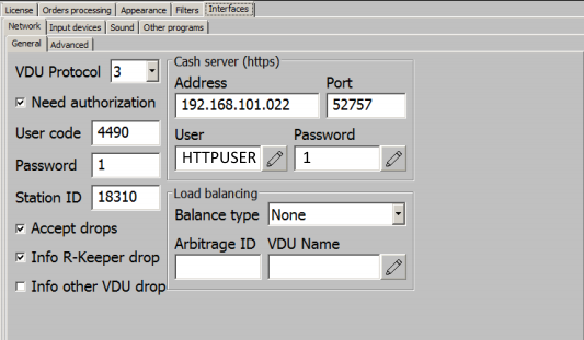 Настройки HttpUser и HttpMode необходимо использовать, если для отправки заказа на кассовый сервер необходима авторизация другого работника, отличного от настроенного на VDU (настройка HttpUser и HttpPass перекрывает настройку CashServer Https User\Password при ОТПРАВКЕ информации о заказе от VDU на кассовый сервер