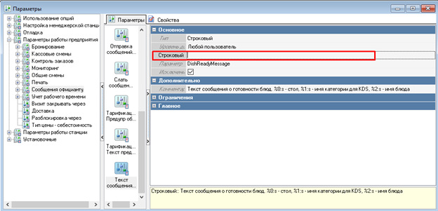 Отключить сообщение о готовности блюд. Для этого заходим в "Параметры работы предприятия" - "Сообщение офоицианту" - "Текст сообщения о готовности блюд")
