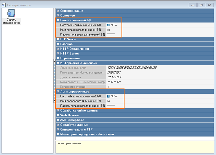 Причина: При заполнении блока Связь с внешней БД автоматически заполняется блок Логи справочников