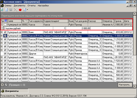 Чтобы провести документ, установите на нем курсор и нажмите кнопку
