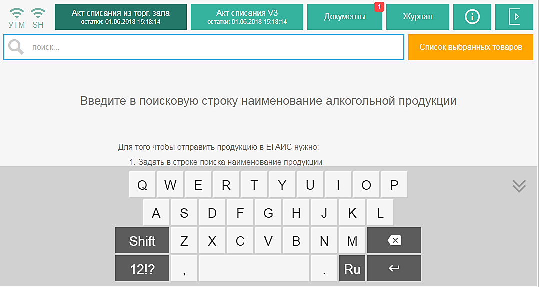 Внимание! При запуске браузера со страницей EgaisForPos на стационарных компьютерах для указания количества или суммы необходимо использовать физическую клавиатуру.