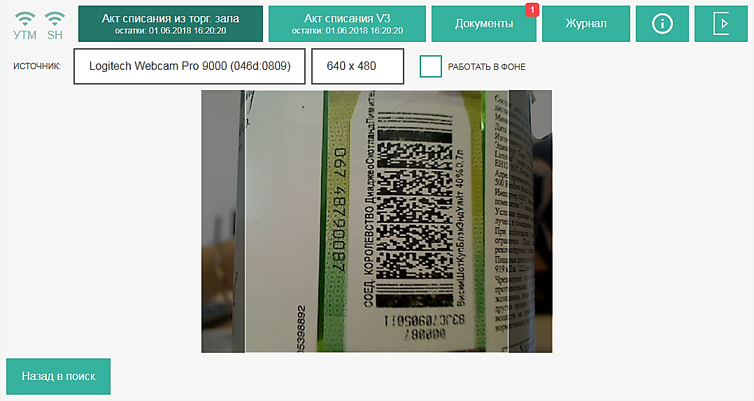 Если устройство, на котором запущен браузер со страницей EgaisForPos, оснащено видеокамерой или используется внешняя видеокамера, то отсканировать товар можно с помощью видеокамеры.