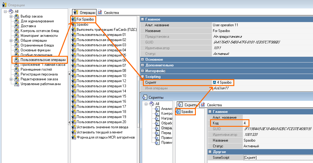 - Добавьте созданный скрипт пользовательской операции, для этого перейдите в меню Сервис > Операции > Пользовательские операции