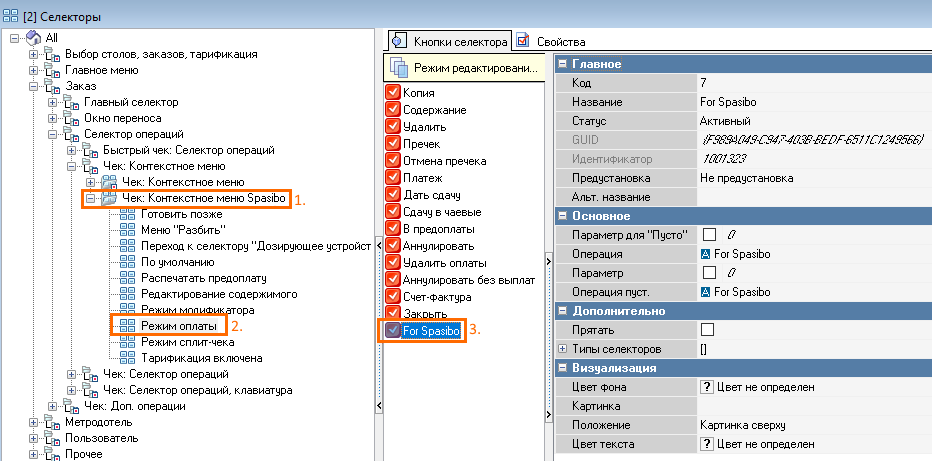 - Добавьте созданную функциональную клавишу, как вариант, в селектор операций. Для этого: перейдите в меню Настройки > Графический интерфейс > Селекторы.