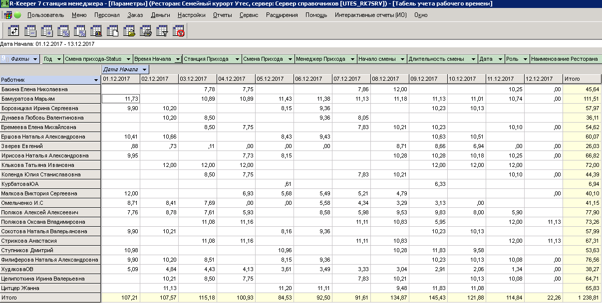 Некорректные значения в табеле учета рабочего времени