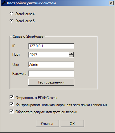 Внимание!!! Настройка «Отправлять в ЕГАИС акты», работает только для StoreHouseV5.