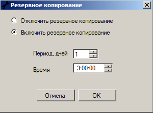 Включить резервное копирование – данная настройка включает резервное копирование базы данных и необходимо задать следующие параметры: