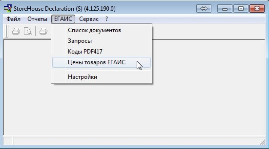 В приложении Sh4Decl в пункте «ЕГАИС» выберите пункт «Цены товаров ЕГАИС» (см. Рис.11).