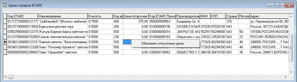 Из данной таблицы EgaisForPos будет забирать цены для создания актов списания.