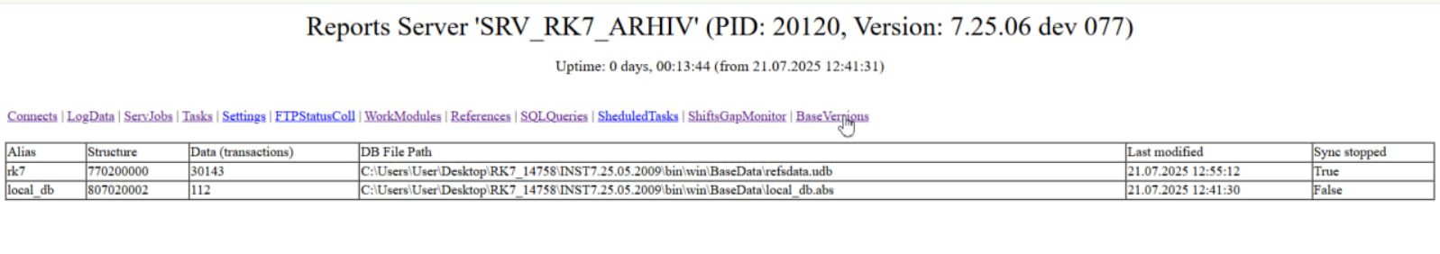 На веб-интерфейсе для сервера справочников, сервера отчетов и кассового сервера в разделе BaseVersions добавились поля