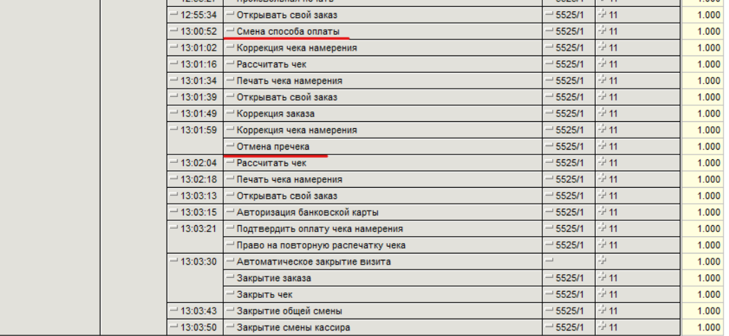 В отчете по операциям смена способа оплаты отображается как отдельная новая операция.