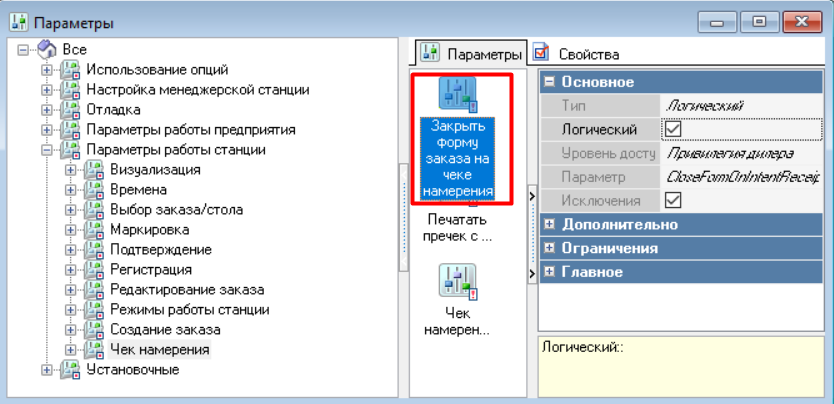 Новый параметр "Закрыть форму заказа на чеке намерения"