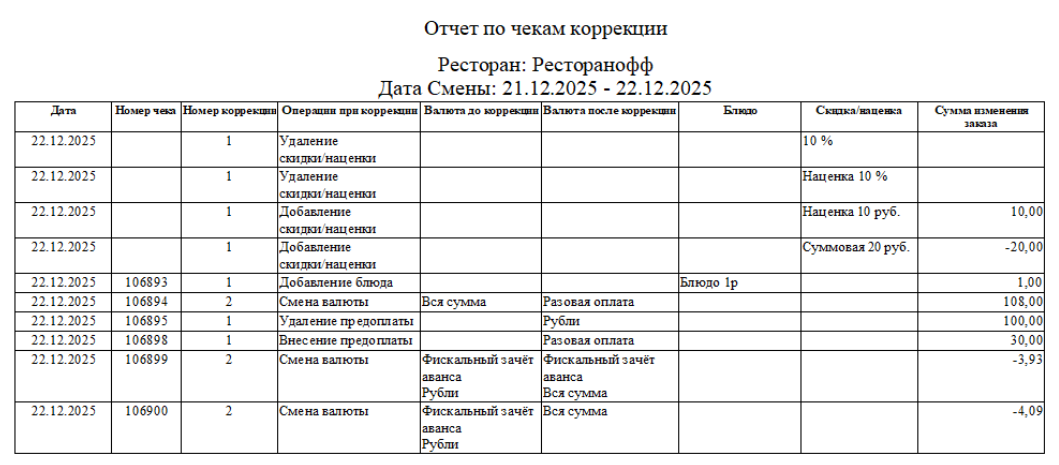 Отчет по чекам коррекции