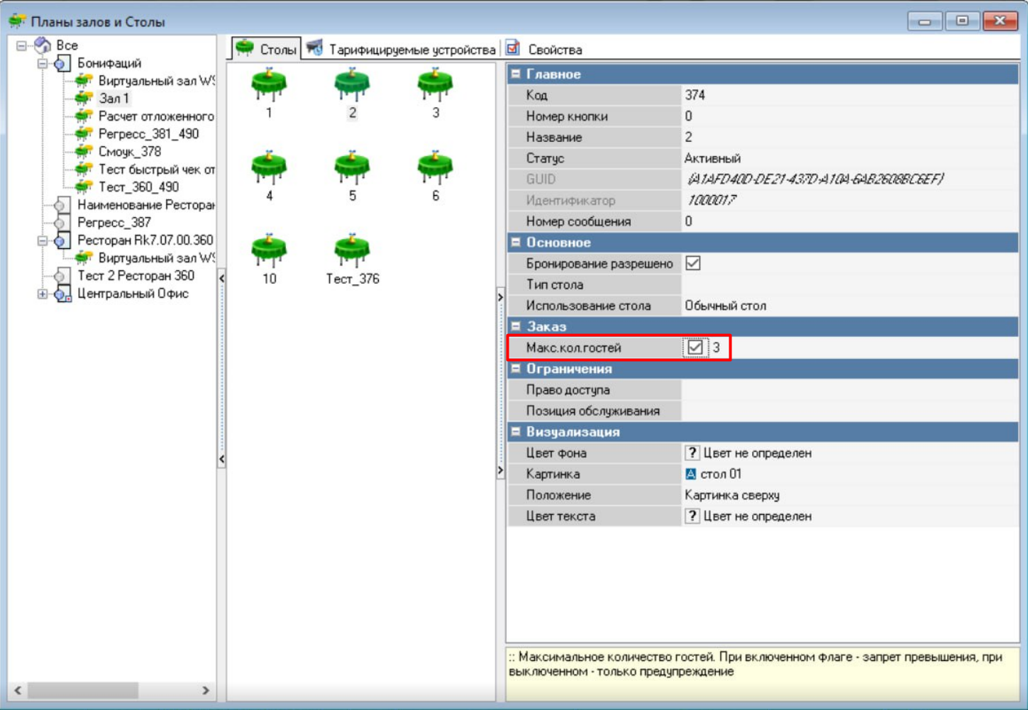 Добавили флаг для Максимального количества гостей в свойствах стола