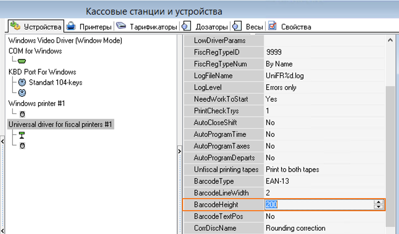 • Для фискальных регистраторов (модуль Universal driver for fiscal printers) большинства типов: