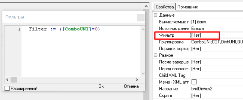 8. При использовании комбо-блюд необходимо использовать фильтр:
