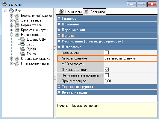 - Выберите валюту, для которой хотите настроить номинал, и перейдите в свойства