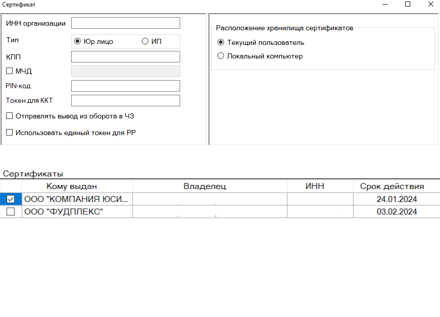 - Использовать единый токен для РР (настройка перекрывает использование токена из поля Токен для ККТ) — выставьте флаг, если хотите, чтобы вне зависимости от наличия или отсутствия заполненного Токена для ККТ, в том числе и для инициализации ЛМ ЧЗ (при новой установке), использовался динамический токен (единый токен в формате UUID со сроком жизни 10 часов.)Динамический токен можно получить только при использовании УКЭП, то есть в rkDExch должен быть добавлен сертификат.