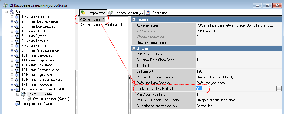 - в свойствах PDS-интерфейса в разделе Опции установить параметр "Look Up Card By Mail Addr" в значение Yes