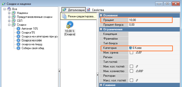 - Создаем скидку на кофе