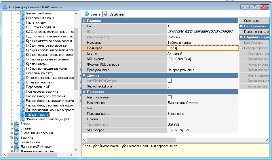 Важно! Кубы доступны только для кубовых отчетов. Для прямых отчётов кубы не строятся.