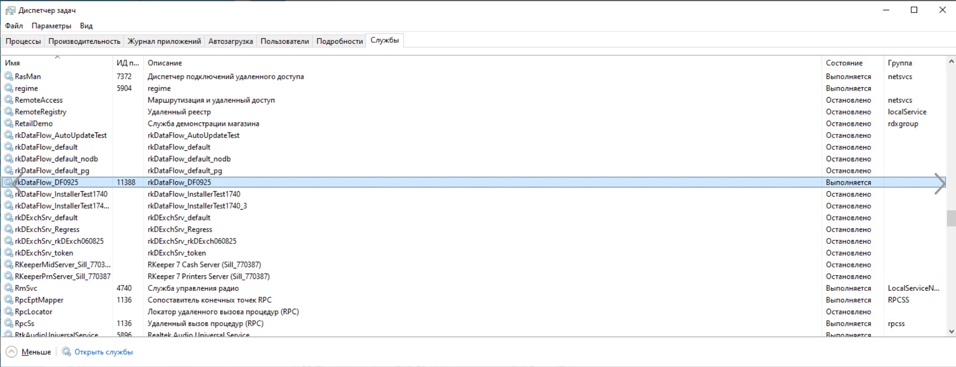 - Завершите установку r_k DataFlow. r_k DataFlow после установки запускается автоматически в виде службы