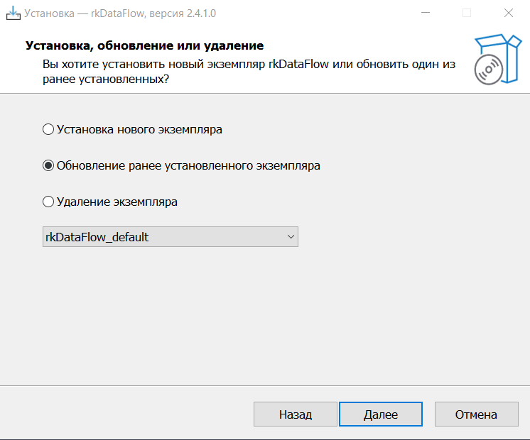 • Обновление ранее установленного экземпляра