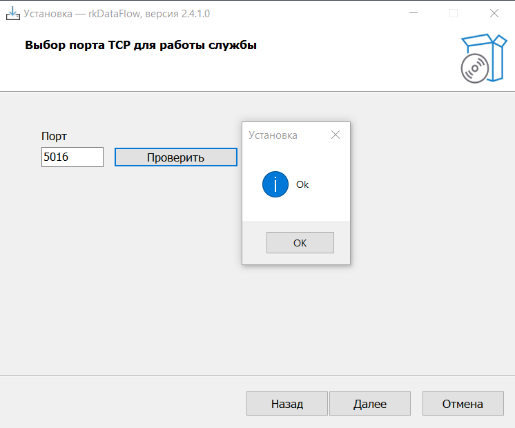 Проверьте работу порта и в случае успеха нажмите кнопку Далее