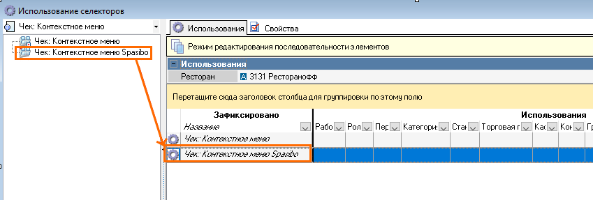 - Создайте копию предустановленного селектора Чек: Контекстное меню, выберите вставить с подэлементами в селектор Чек: Контекстное меню. Переименуйте копию.