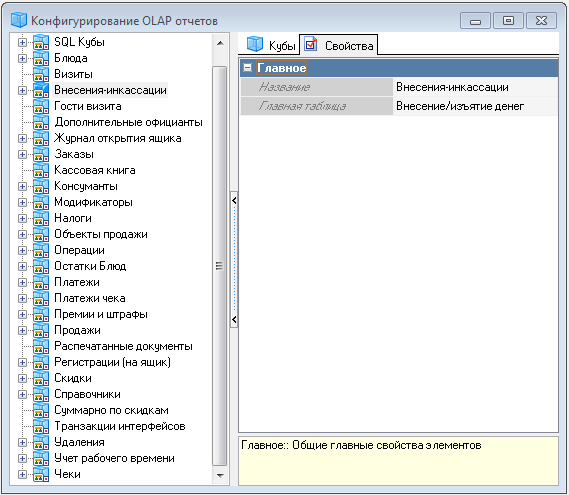 Главная таблица - свойство с названием таблицы, содержащей элементарные данные схемы кубов;