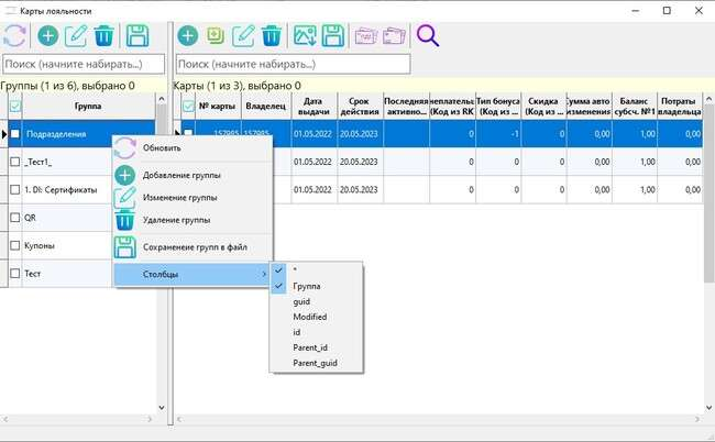 Интеграции с r_keeper Системы лояльности extdll_man Приложение менеджер карт extdll_man Current: Действия с группами карт, доступные в контекстном меню Действия с группами карт, доступные в контекстном меню Последнее изменение статьи 06.11.2025 17:51 Пункт меню Столбцы позволяет показать/скрыть в табличной форме доступные поля таблицы. ×