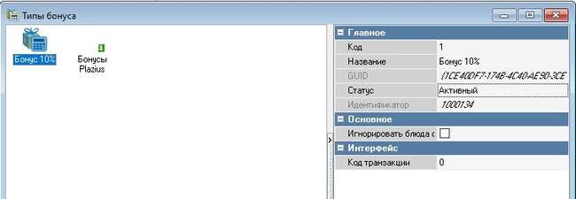 «Код типа бонуса» предварительно созданного в менеджерской r_keeper, которому соответствует так же предварительно созданный Бонус с детализацией накопления равной 10%.
