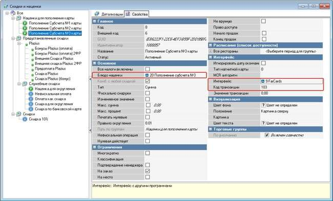 Каждому субсчету Farcards соответствует предустановленный числовой параметр Код транзакции: