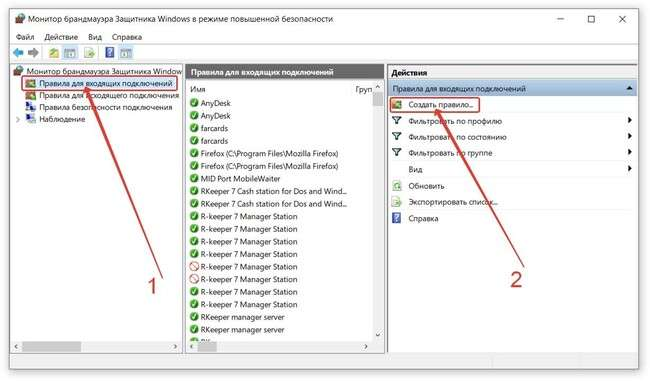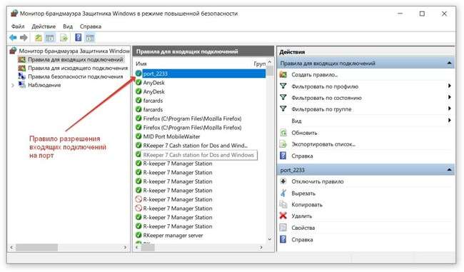 Указанный в файле netk.ini (в каталоге Farcards) порт следует добавить в виде нового правила разрешения входящих подключений в Брандмауэр Защитника Windows. Для этого выполните последовательно действия, показанные на скриншотах ниже. На этом настройка брандмауэра защитника Windows и настройка связи системы лояльности extdll_man с кассовой системой r_keeper выполнены.