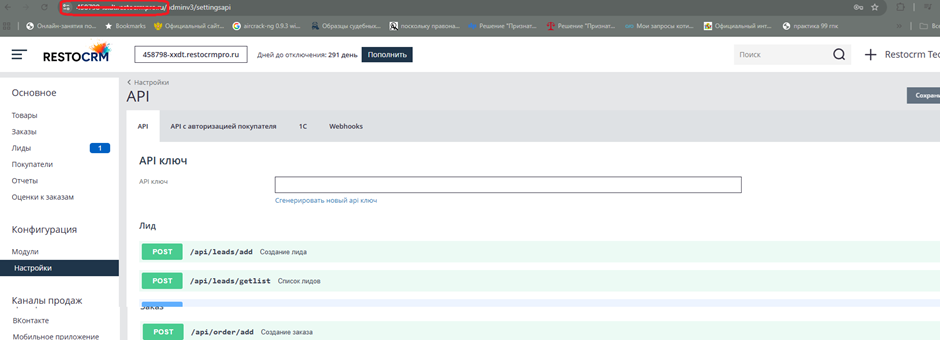 Интеграции с r_keeper Системы лояльности Модуль интеграции RESTOCRM с r_keeper Содержание Current: Настройка RESTOCRM Настройка RESTOCRM Откройте настройки API в личном кабинете.Сгенерируйте API ключ.Получите API URL, это как правило URL личного кабинета.Сохраните API ключ и API URL, они потребуются в дальнейшем для завершения настройки в config.ini - это параметры URL и ApiKey. ×
