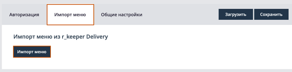 Только после сохранения настроек можно переходить к импорту меню.