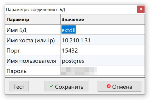 Форма предназначена для тестирования и указания параметров соединения с базой данных сервера Postgresql.