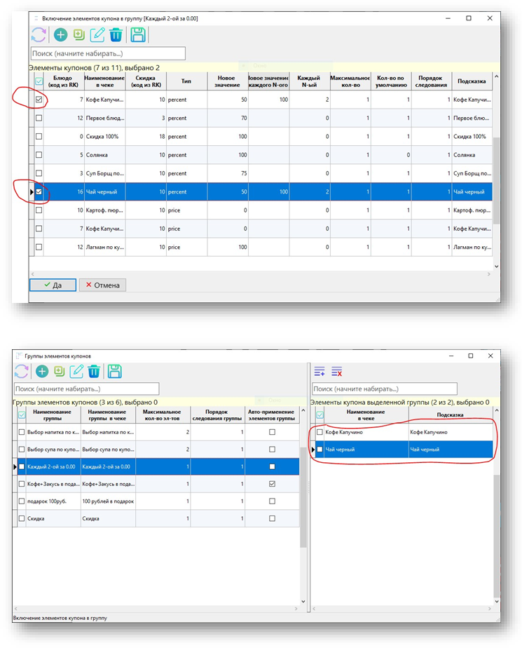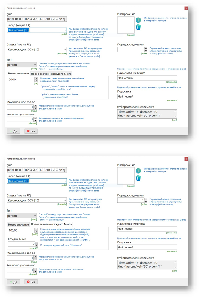 По аналогии создаем второй элемент купона Чай черный(см. ниже скриншоты)