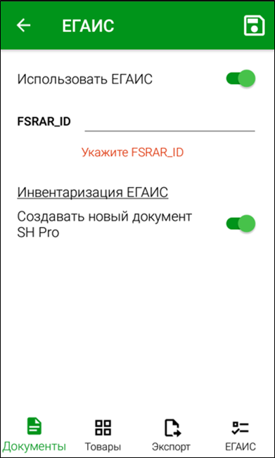 ТСД работает только с накладными ЕГАИС, сохраненными в базу данных r_k StoreHouse Pro.